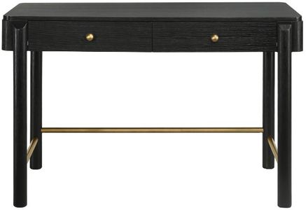This black vanity table features two drawers, providing convenient storage for makeup, accessories, and personal items. Its compact size fits well in bedrooms or dressing areas, offering a practical and organized space for daily routines.Read More