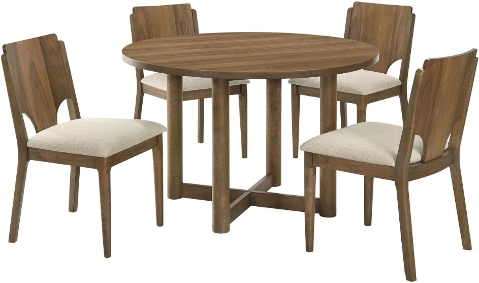This Biltmor dining set features a sophisticated blend of beige upholstery and a rich walnut finish. The set includes a spacious table and four elegant side chairs, combining comfort with classic style. Ideal for both casual and formal dining, it adds timeless charm to any dining area.Read More