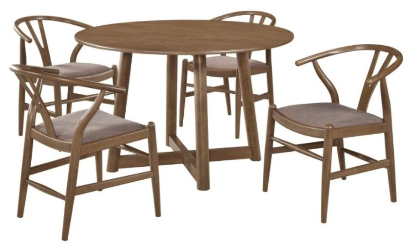 Introduce a stylish and light vibe with this five-piece dining set, made with Asian hardwood and finished in a rich walnut