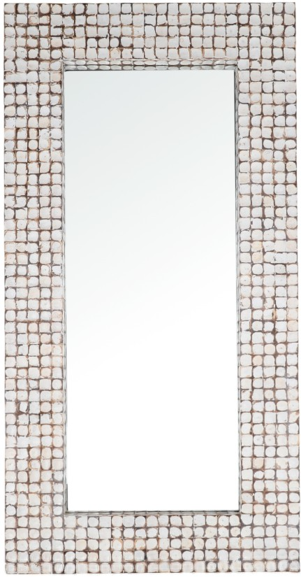 The Hadas floor mirror is a crafted statement piece that combines natural materials with refined design. This full-length mirror features a frame meticulously inlaid with whitewash coconut shell tiles, showcasing subtle variations in tone and texture. Each piece is unique, with inherent imperfections that add to its artisanal charm.Read More