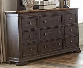 The Grand Louie collection features mixed wood construction and nine storage drawers.Read More