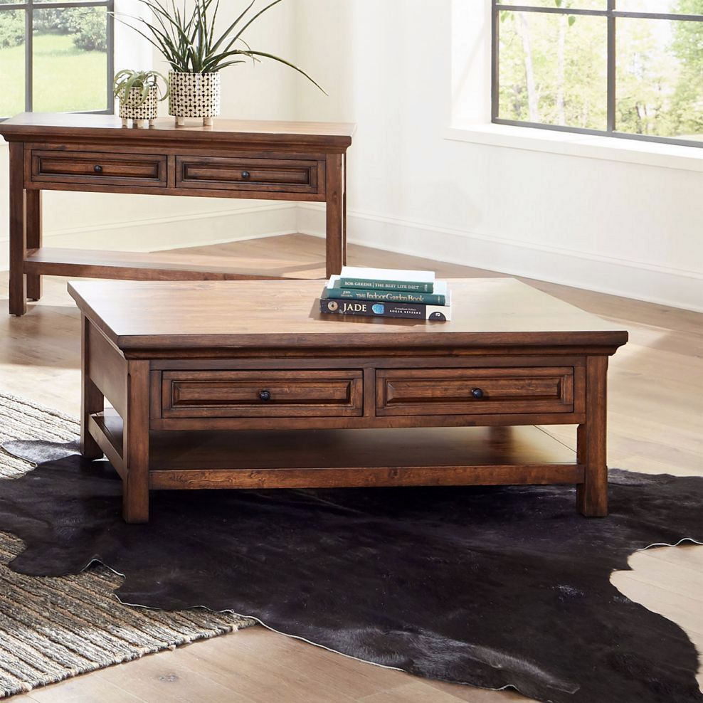 The Hill Crest cocktail table features a rich brown wood finish, double storage drawer, and a solid-wood floating top. Its beautiful design and quality craftsmanship make it a timeless addition to any living space.Read More