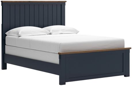Add homespun charm to your restful retreat. A modern take on a timeless silhouette, this full panel bed pairs a dark slate blue finish with light brown accents. The slatted headboard in a classic shaker style brings an air of beautiful simplicity to the bedroom.Read More