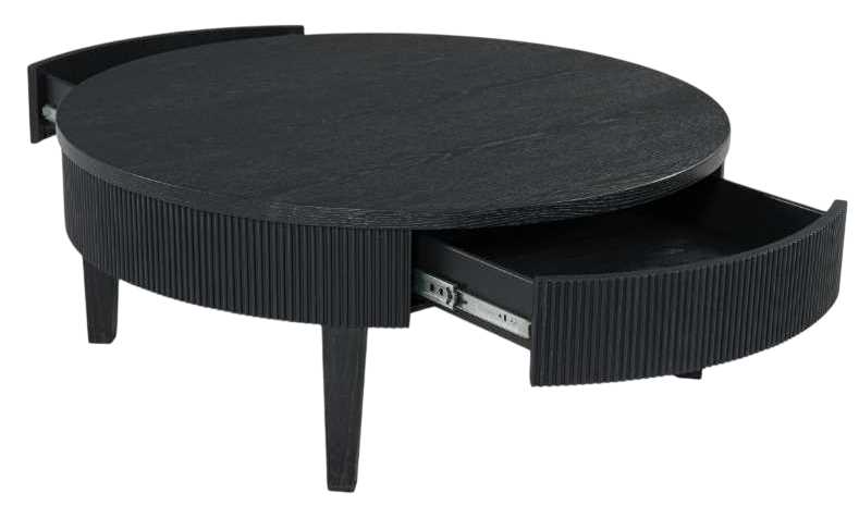 Classic and cool in dark charcoal, this coffee table brings contemporary convenience to your living room. Short on storage? The trendy reeded apron conceals a drawer perfect for remotes, controllers and other entertainment accessories. What a perfect marriage of style and functionality.Read More