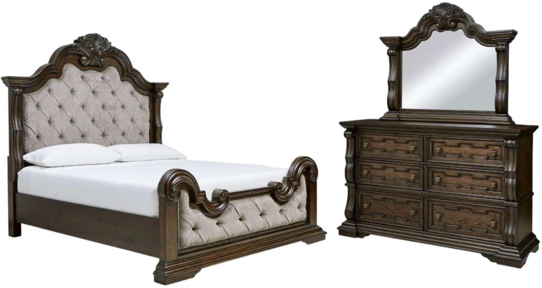 *King panel bed, dresser and mirror only, any other products that may be displayed are sold separately. Images may not represent the actual size and color in images may differ in person. See store for the actual color or finish.